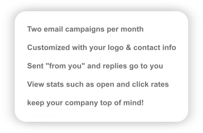 A Newsletter and Product Blast is sent from "you" each month to your contacts. Your customer will receive a free setup if they order one of the featured products by the end of the month.